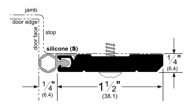 Designed to be applied to the “stop” perimeter of the door frame. Includes a silicone seal with aluminum framing. The seal compresses against the door, to create a tight weatherproof seal. This perimeter gasketing is supplied with a Silicone (“S”) insert.