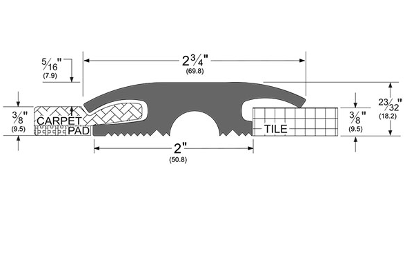 Note: Adhesives underneath threshold may add between 1/32" to 1/16" of height