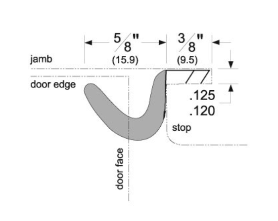 • Minimum space between the door face and the stop is 5/16"